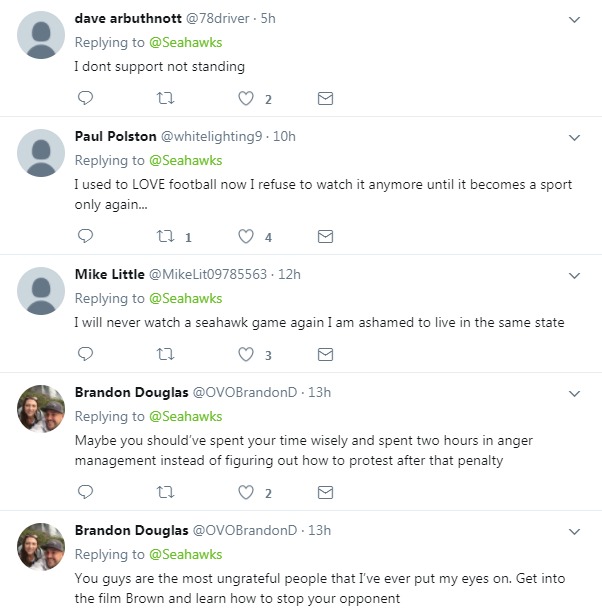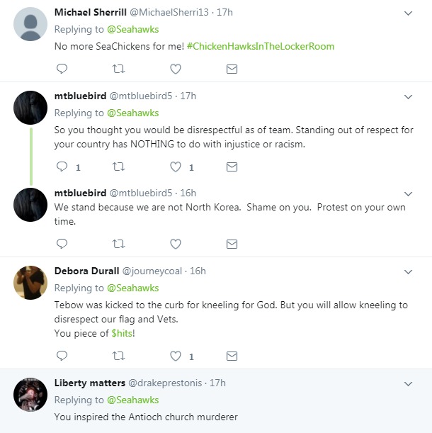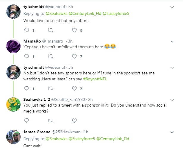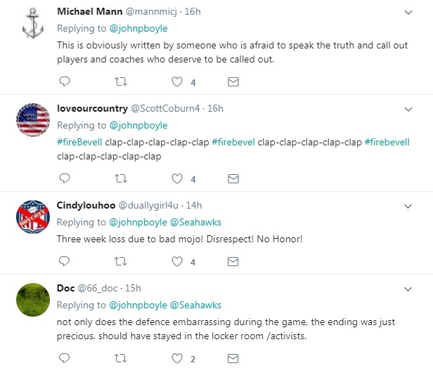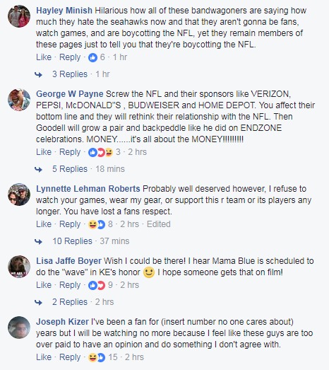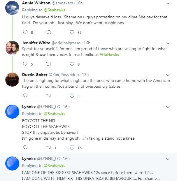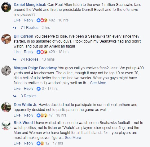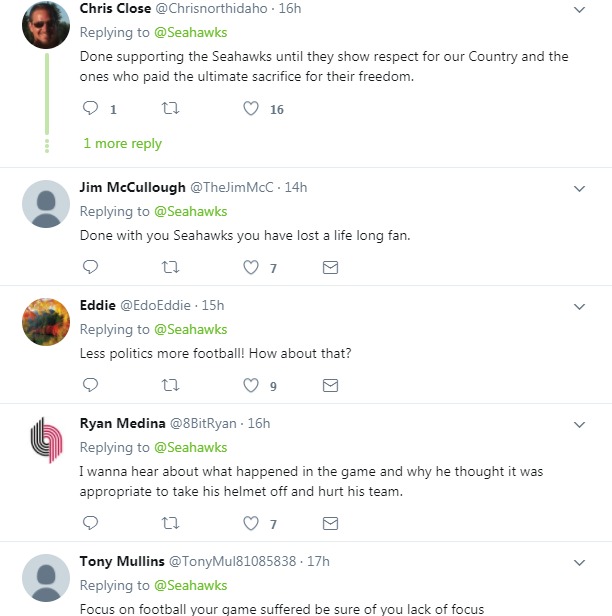 Ladles & gentlemints, your Seattle Seahawks social media. What should have been wanton, targeted ranting from angry, passionate fans about the offensive line & an exposed defense was instead wanton, random nonsense from stupid, random people about who is the better American in America. The protests & Taliban-esque outrage at the lack of purity robbed me of the joy at seeing truly depressed fans lamenting their team’s misfortune.