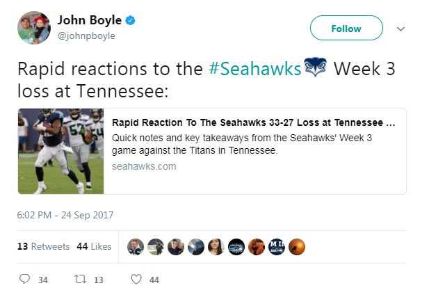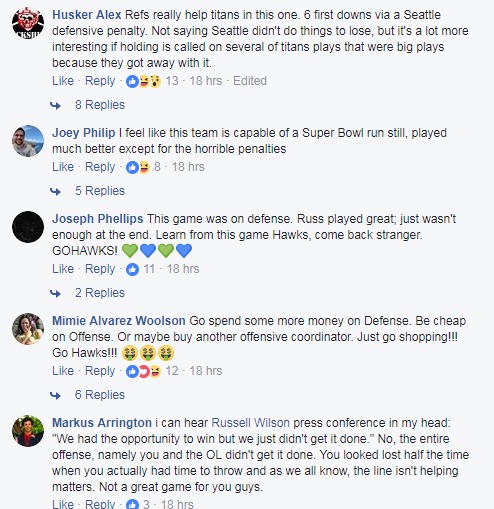 Smartly, the Seahawks do not allow comments on their team site, but do direct these stories to their Facebook & Twitter sites. Which is good, because after this weekend, the Facebook no-pics & Twitter eggs were out in full force.