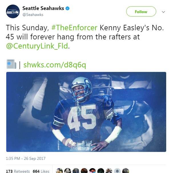 Kenny Easley, a good player with a great legacy, is getting his number retired this weekend.