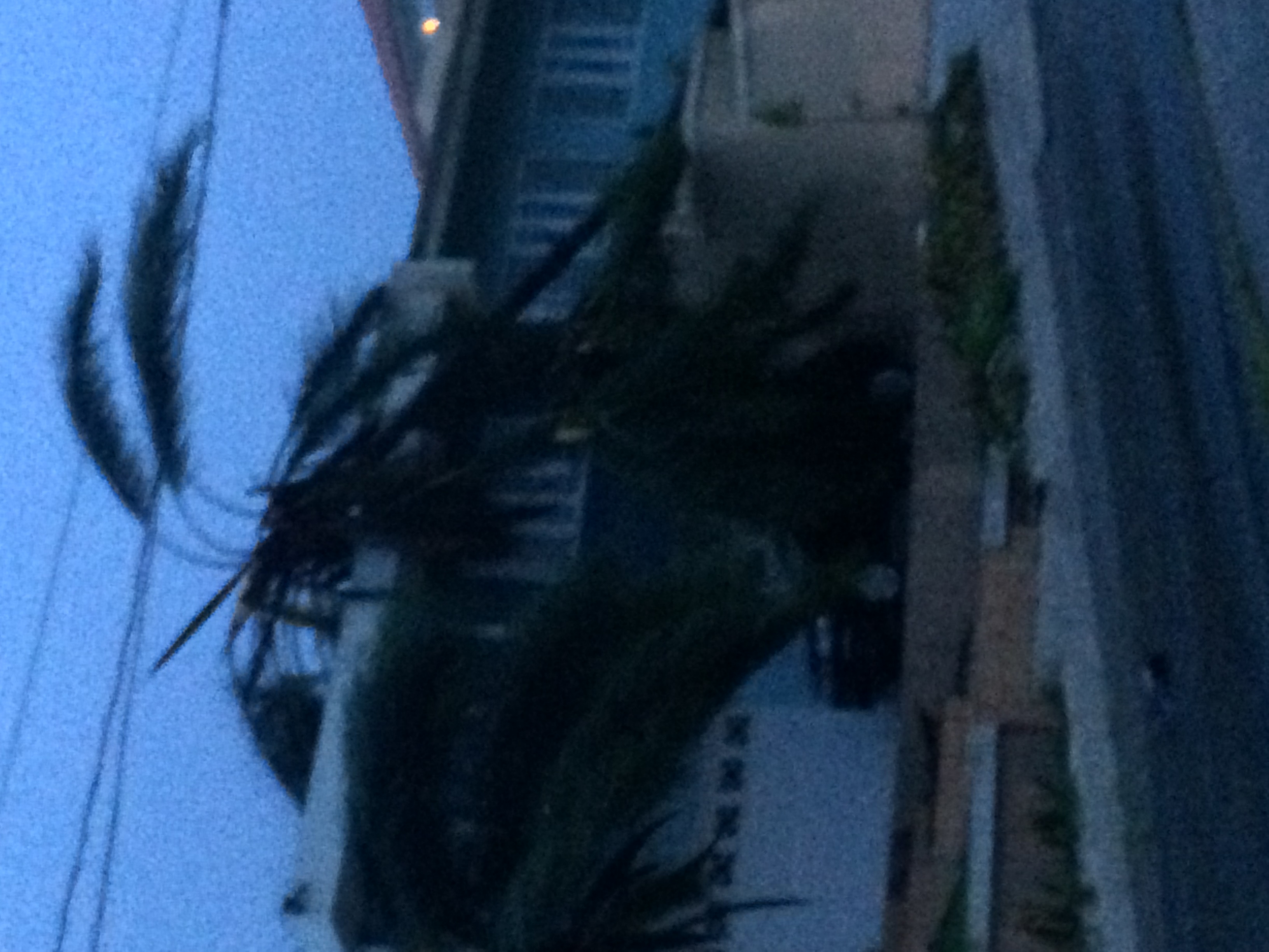 On Sept. 20 María, category 5 (the highest), tore through Puerto Rico with winds over 175 mph. I took this picture when the storm was leaving; both 25 ft. palm trees were uprooted to the left, and fronds are blowing to the right.