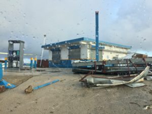 Since the first gas stations opened on Sept. 21, getting any fuel has required at least a two-hour wait. Lines of over a hundred cars, and an equal or higher number of people on foot with portable tanks, are common on every station–open or otherwise. Two-lane roads now have to fit three vehicles, two of them passing through in opposite directions, whether hatchbacks or tankers. People start getting in line before 5 AM, with many leaving their cars overnight. The first station I was able to get gas from, on Sept. 25, was this one–which used to have two pumps: