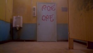 The camera shows a quick image on the wall as the sound of Tyler smacking the flashlight is heard in the background.