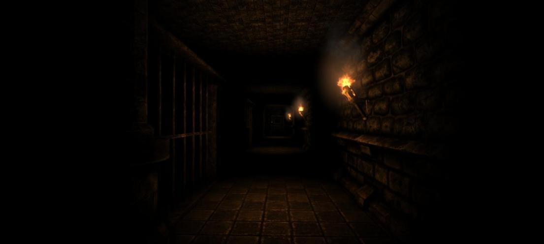 The camera now shows what looks like a torch lit hallway.