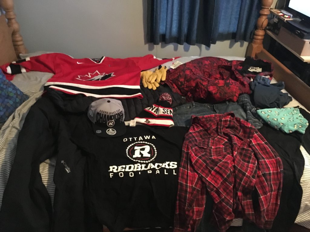 Layer 2: My lucky Ottawa REDBLACKS t-shirt, merino long underwear.