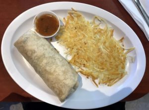 What says L.A. more than a breakfast burrito? I know this Cuban place not too faraway (Oh hell here he goes again with his over use of those silly parentheses). If you find yourself in sunny So Cal looking for a fine Cubano (I think “yeah right” has a recipe for one some place around here) I highly (you sure are) suggest Havana Sandwich Company in beautiful El Segundo California. Slow roasted pork, black beans and scrambled eggs with hot sauce on a tortilla is what I had. The boy had bacon on his and no hot sauce, he’s delicate.