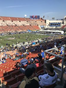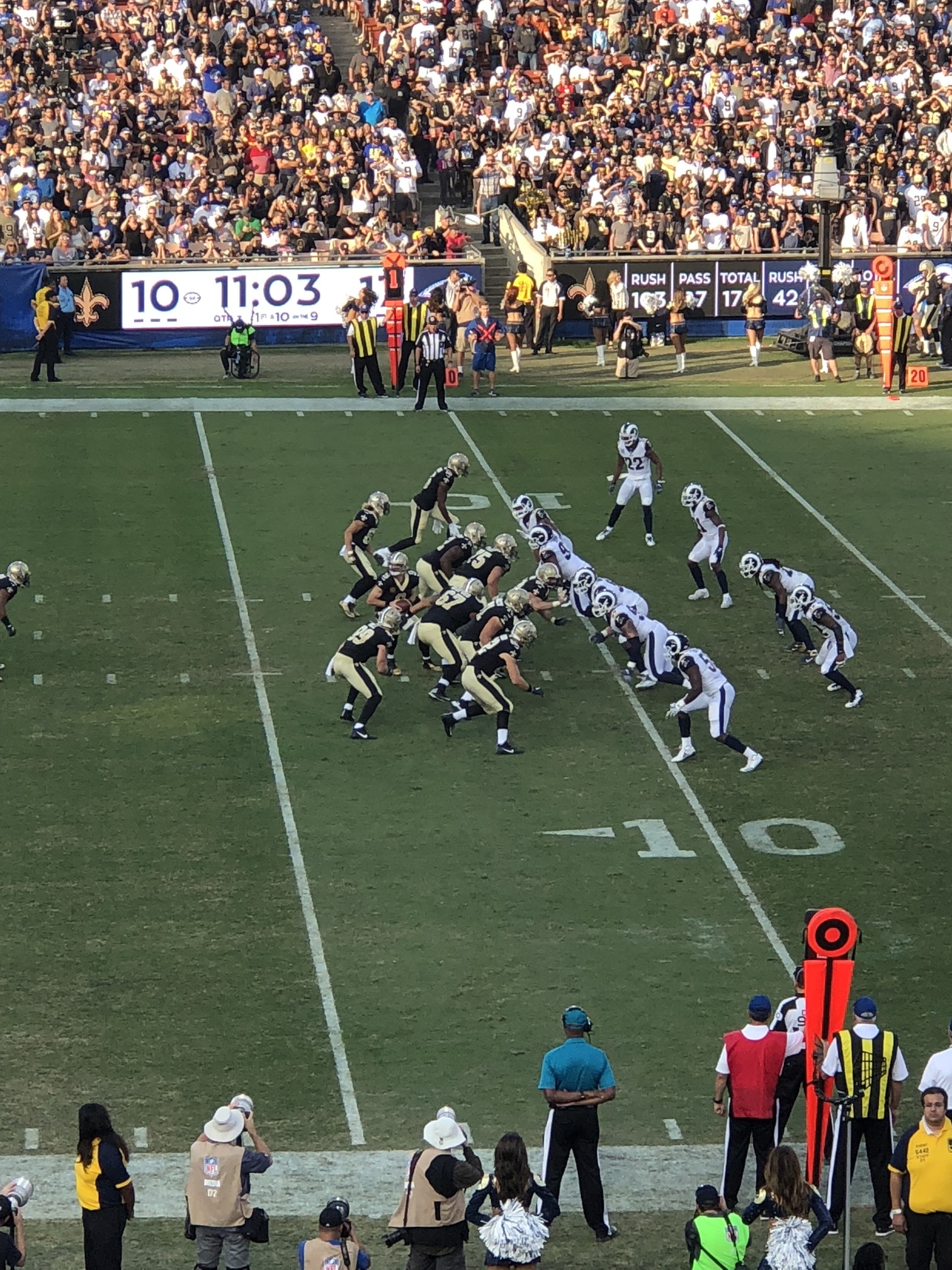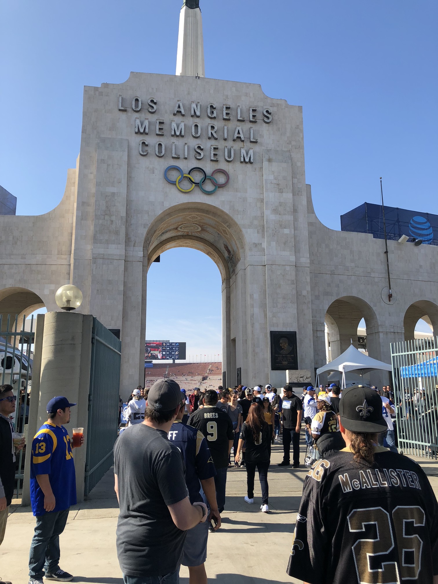Maybe it was the 50 grams of high grade edible pot or maybe it was the terribly (we’ll get to that ) overpriced beers but what started out was a simple idea, I’m to be a correspondent if you will and do a “boots on the ground” football game piece for the Saints and Rams game at the L.A. Coliseum. You know, write your experience take them deep into your minds eye?