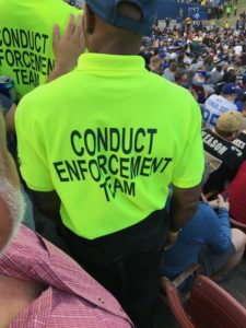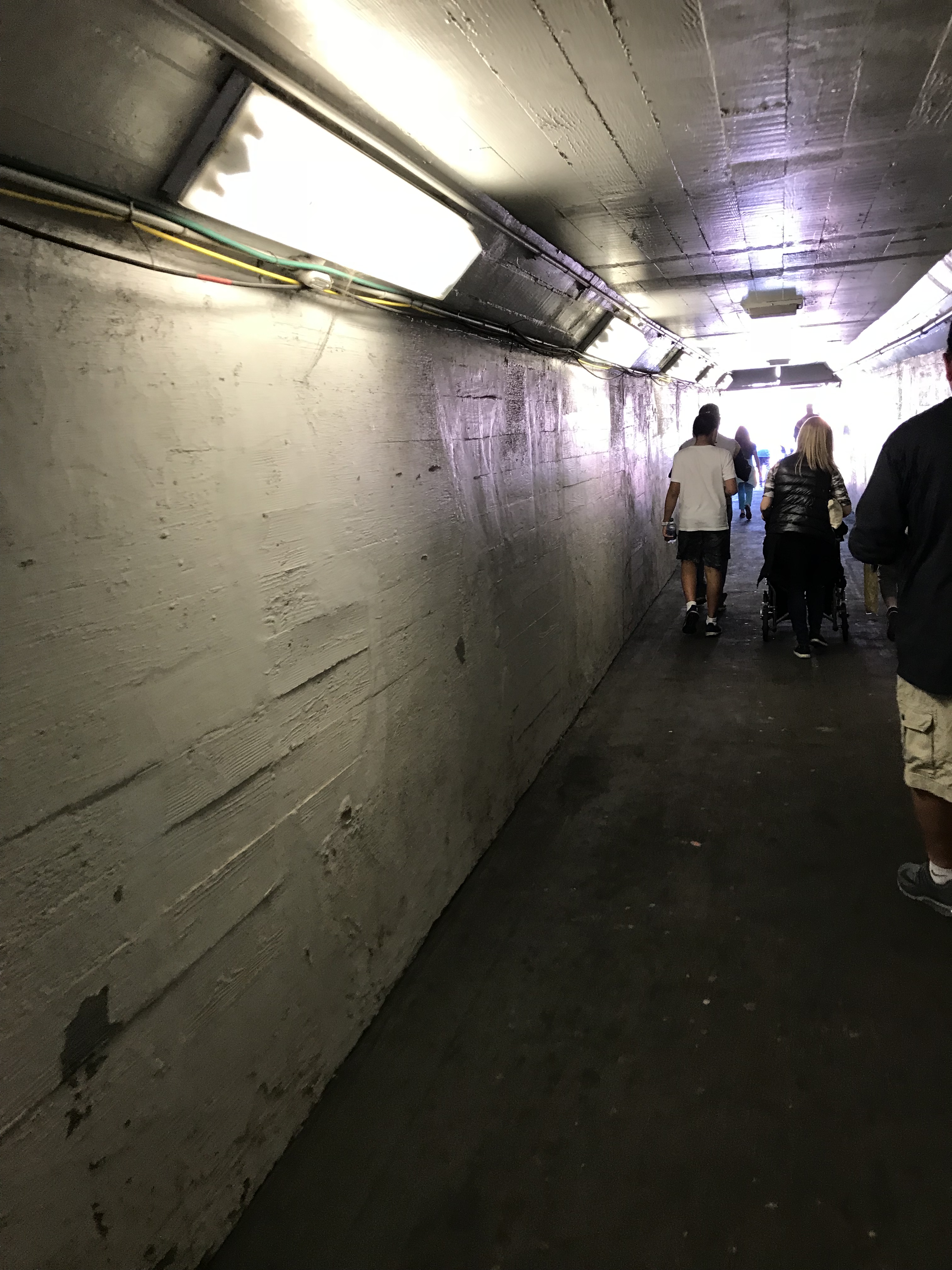 So we walked right up to where all the police were, pulled out our tickets and walked willingly into the enemy’s den. Only the enemy were pretty nice folks. No violent vibes to be found. You ever been to a Raider game? Now that vibe hums with menace. Just as it looked like nothing could go wrong they grabbed my boy out of line and said “Get rid of it or go away!” See being the soft slow mutant that he is he smokes cigarettes. NO!!!!!