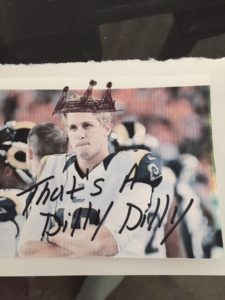 The poor helpless child was lead down a path to becoming (shuddering uncontrollably as I write that) to becoming a Rams fan! Egad! Anything but that! My son, a Rams fan. Hell on game day he wore a boner and a Sam Bradford Jersey! I shit you not, a Sam Bradford jersey (shuddering again), a pair of oversized clown shoes, sunglasses and nothing else. I told you already (at least he doesn’t work at a bowling alley) he’s soft in the head. Why was that man so mean? Stupid Rams.