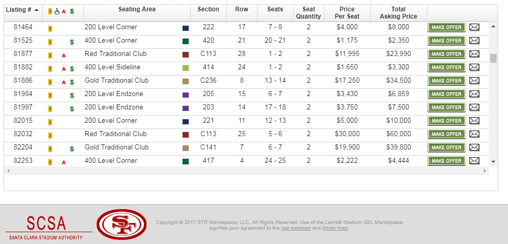 - Compare Sections 210 & 408 on the team sales site to Sections 222 & 417 on the secondary sales site.