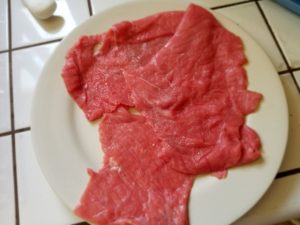 First we are going to flatten the veal and the chicken. Again here’s the veal which came in the perfect thickness.