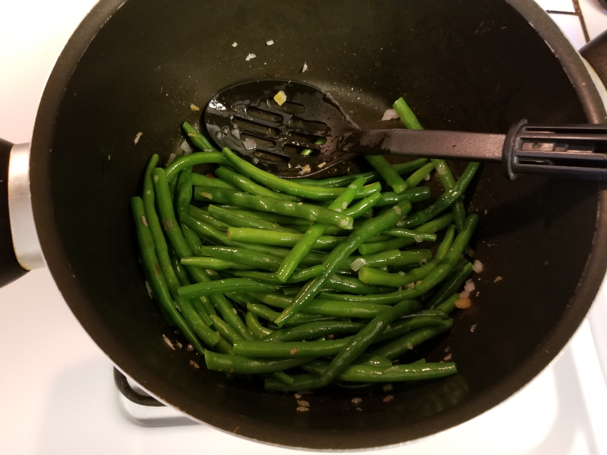 Cook for about a minute until the aroma starts kicking you right in the dick. Next add in the stock and the soy sauce. This will cook for about 5 minutes or until the beans reach your preferred level of doneness. Cook longer if you like a softer bean.