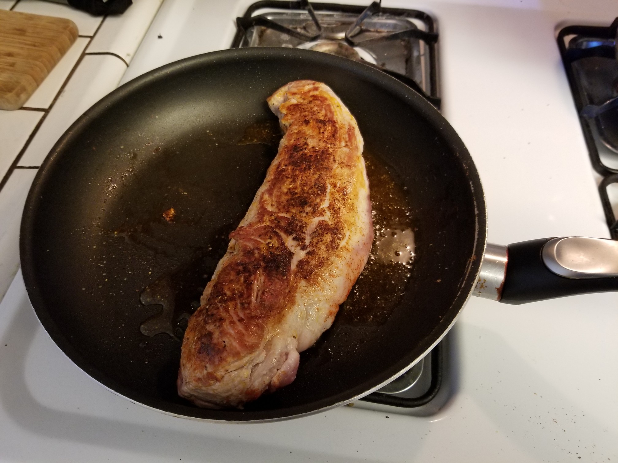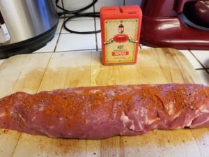 The tenderloin is the very lean center of a sirloin pork chop. There’s not a lot of fat, it doesn’t have the same porky fatness that fattier cuts of pork do but it lends itself well to flavor enhancement. Tenderloins are also notoriously easy to overcook but we’ll address that later.