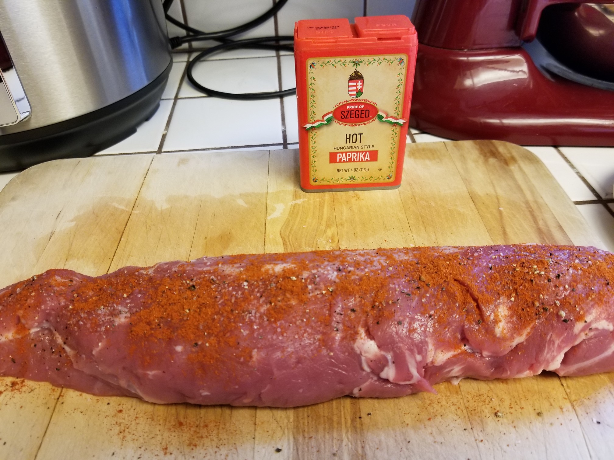 I love hot Hungarian paprika for some meat searing action. Pork, beef, whatever, this shit just works. Get a nice coating on there and let’s get ready to sear.