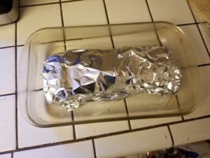 We just need the one today so wrap the other loin in plastic wrap, then in foil, write the date on the outside and sock away in your freezer for another day.