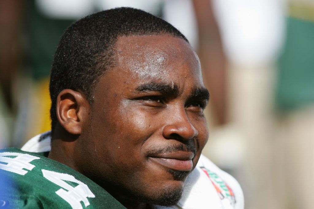 DAVENPORT: Hello there everyone and welcome to Request Line! I am former NFL runningback, Najeh Davenport here to spin a few… [Stomach gurgles again, louder, but he tries to play it off with a slight cough] …uhm, records for you.