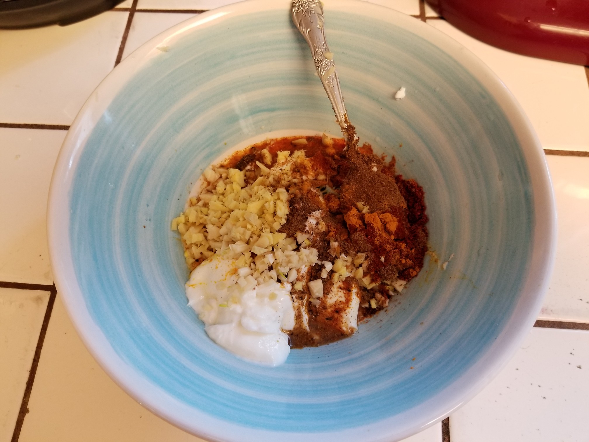 1 cup of plain yogurt. I used Greek yogurt having had success in the past. Remember the grilled za’atar chicken? Oh my yes.