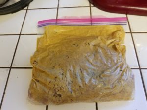 Sock this bag of goodness into your refrigerator for at least an hour and up to overnight. Mine went about 3 hours.