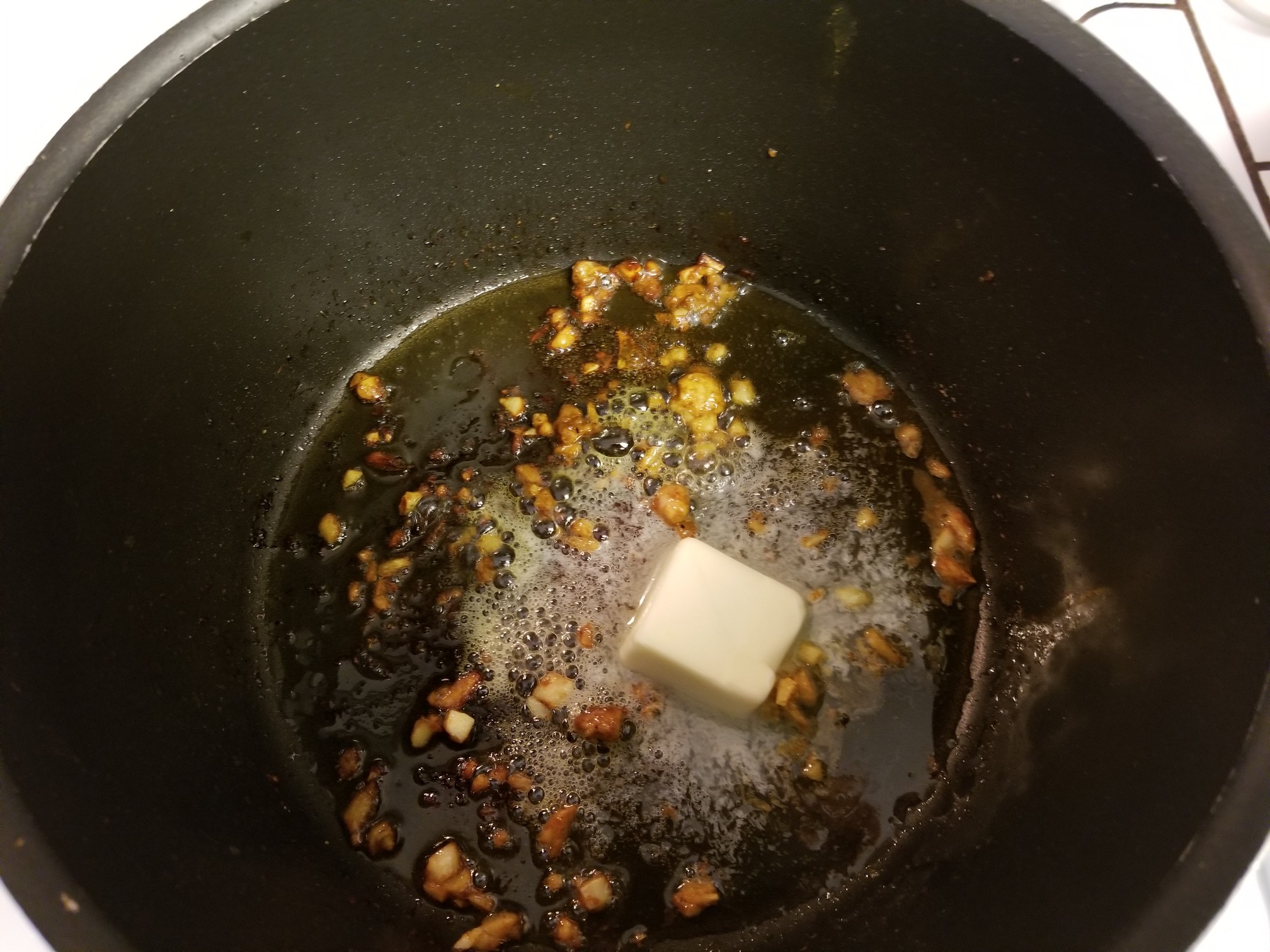 Yep, we’re adding the butter directly to the pan that still has some of the leftover marinade in it.