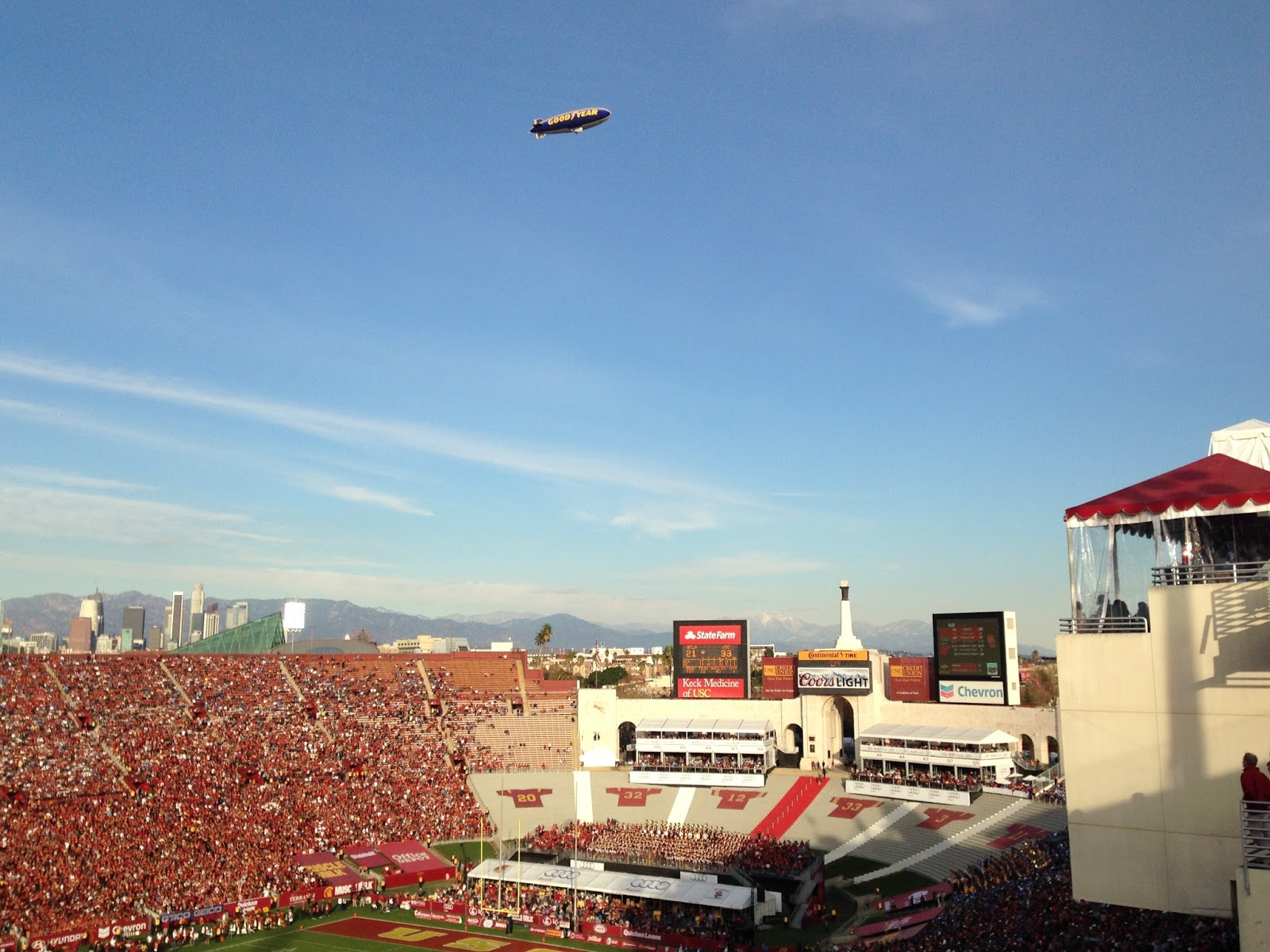 The Goodyear blimp has been a fixture at many major sporting events from its first appearance at the Rose Bowl in 1955.