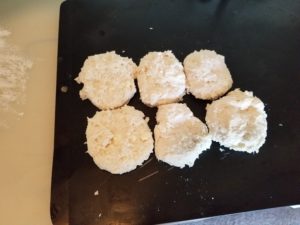 Get a round cutter or use a glass with a floured rim and cut out your biscuits.