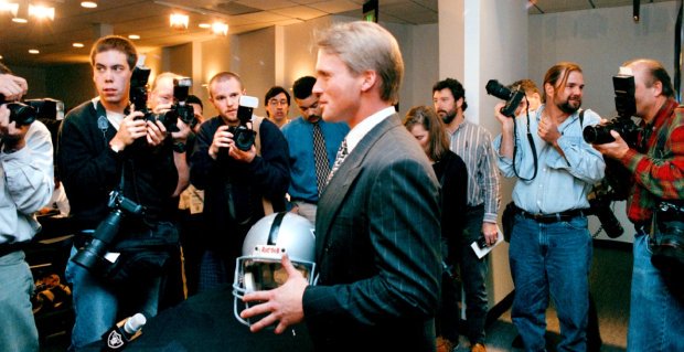 I’d just like to thank Mark Davis and Mrs. Davis for this opportunity. I used to get phone calls from Al Davis at 3 a.m. Now, I get them from Mark Davis at 3 a.m., but I want to thank you for this opportunity from the bottom of my heart… Obviously, this is very emotional for me. I never wanted to leave the Raiders. I never thought I’d be back, but here I am and I’m ready to get to work… I love the Raiders. The brand is global. Everywhere I went as Monday Night Football analyst, the Raider Nation would come out of the ground. I love the Raiders, and most of all, I love to win. I am going to do everything I can. No guarantees, no promises, but I want to win. I look forward to working with Reggie [McKenzie] and his staff. We’ve got a lot of work to do. I can’t wait to get started.