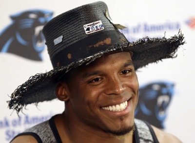 CAM NEWTON: [draws a card] How do you know a Brown has been sneaking around your locker room?