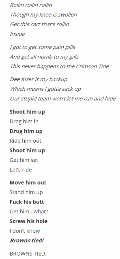 “Maybe they got their celebrations confused and that is why they started giving away touchdowns like they were strings of beads.” -ArmedandHammeredSonOfSpam (Below)