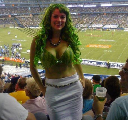 It is. Saskatchewan fans are known for wearing watermelon helmets.