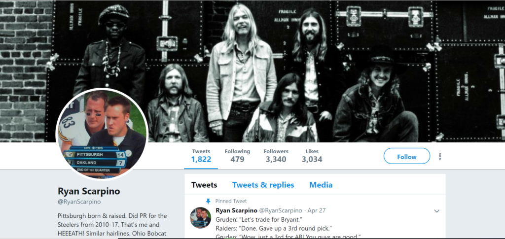 – FYI, this is Scarpino’s twitter page, because nothing says “hip to today” like The Allman Brothers. (don’t @ me)