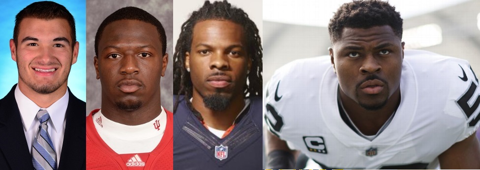 Four men (MITCH TRUBISKY, JORDAN HOWARD, KEVIN WHITE, AND KHALIL MACK) step into the room and arrange themselves in a line. MITCH TRUBISKY, at one end of the line, is holding three oranges in his hands. He steps forward and begins juggling them. He progresses through a basic cascade pattern, then switches to a shower, then finishes things off with what’s known as “juggler’s tennis”. He catches three balls, takes a little bow, and steps back.