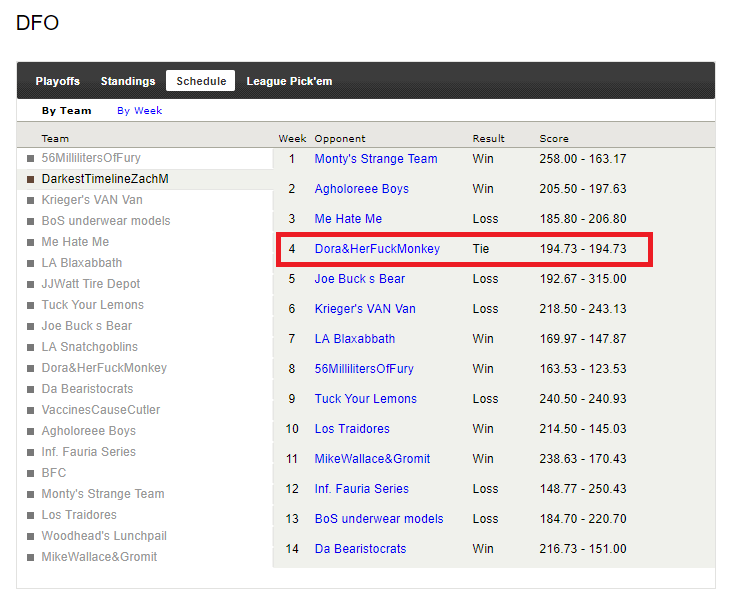 Sharkbait and Bfc’s tie in fantasy astounds me every time I look at that league. I am no mathlete but the odds would have to be astounding.