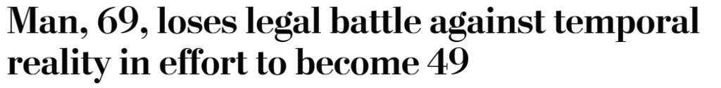 lost his case to have his age legally reduced from 69 to 49, in what is clearly the first attempt by someone to have their internet lies become real-life truths. His rationale for the attempt?