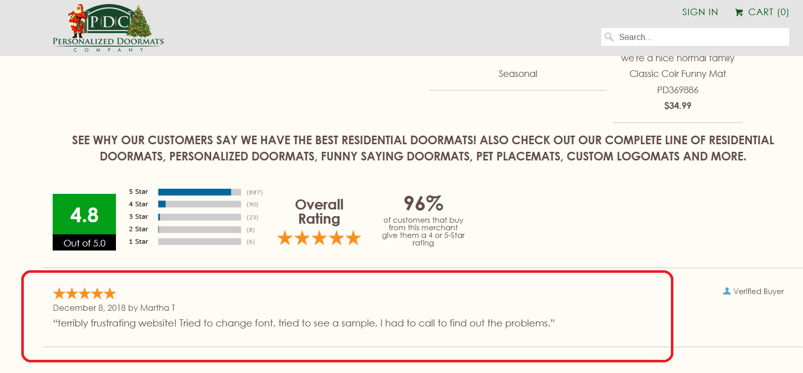 My brother bought a house so I was looking for a doormat for him for Christmas. These guys need to work on their tech game.