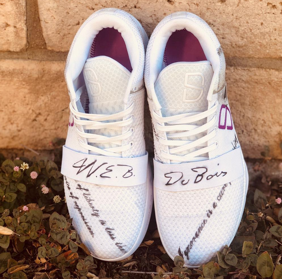 Tribute to W.E.B. DuBois. In a vacuum these would be alright, but it seems like ol Webby is getting the same tribute all historical figures get. Few quotes on the front, their name drawn out with smudges on the top. It’s fine, but I might switch up the color so it isn’t always white. A nice faded golden colored shoe might be cool. Sort of like they are aged parchment.
