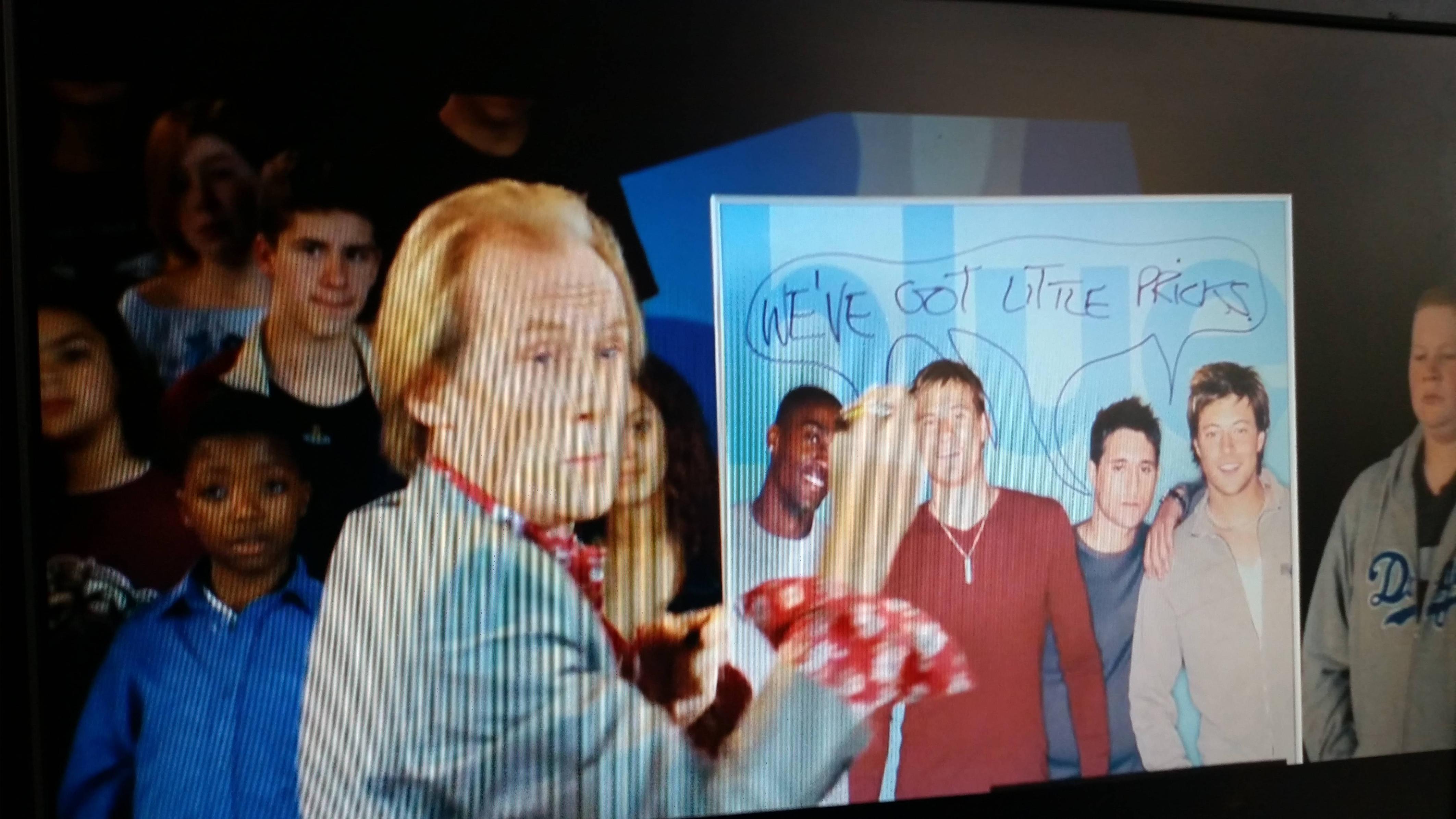Alan Motherfucking Rickman (AR) finally shows up! He is the boss of HBS that blew off Colin Sandwich Boy and also gay-love-promoter/random redhead at the wedding, Sarah.