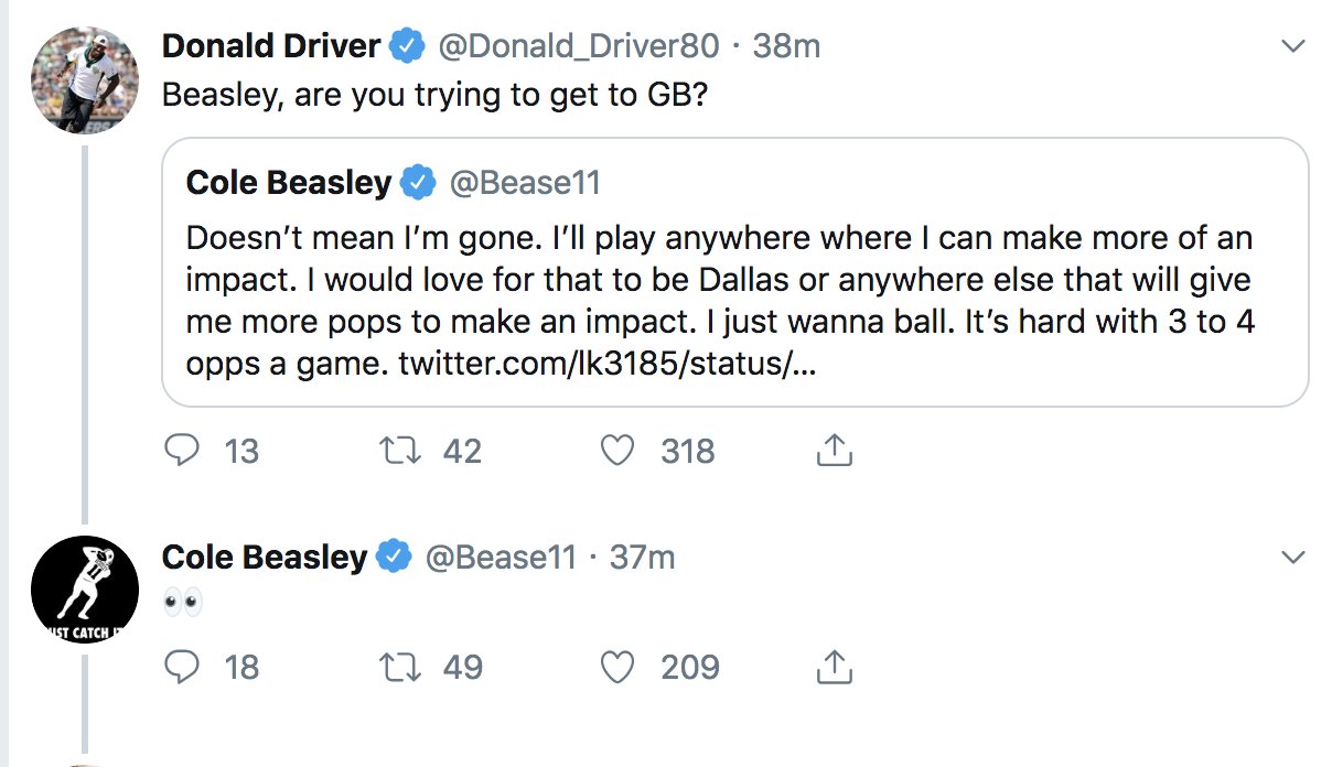 - Tumult in Dallas as Cole Beasley drops accusations the front office pushes who gets the ball, and that influences play calling.