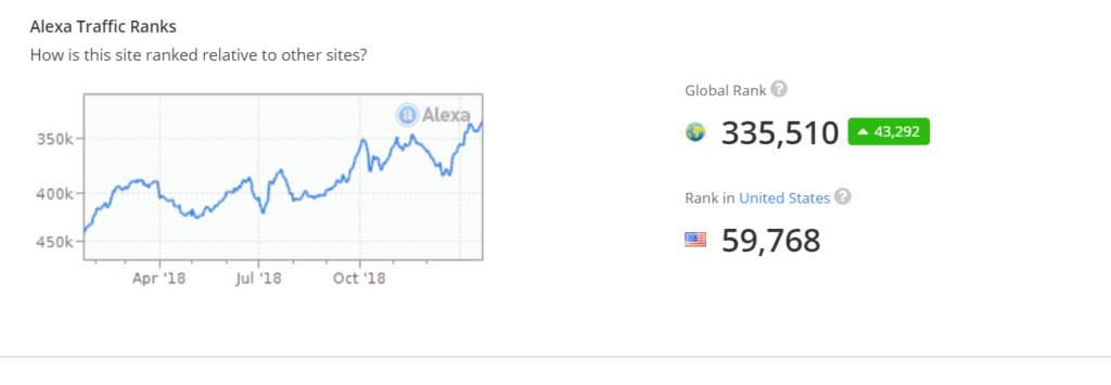 While that might not look like much, remember that a lot of those numbers are porn sites. If you look at the chart, back in early July, we sat at 425,000th, and have since been making steady progress towards some form of legitimization.