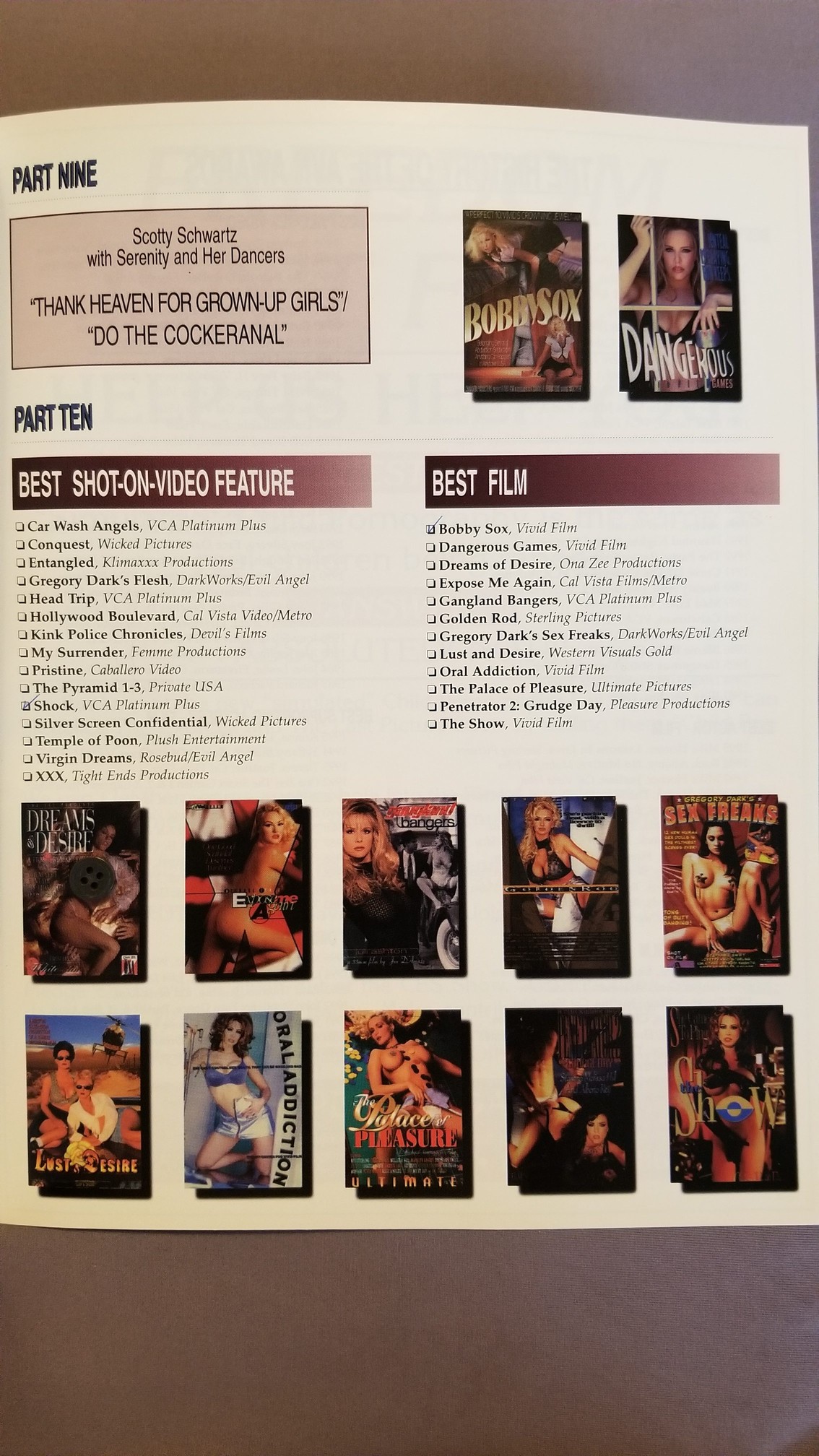 We were almost at the end. Only the two biggies were left: Best Video and Best Film. You’ve got to remember that the late 90s was the point where film was dying and video was taking over. As resolution got better and better, directors and production companies shot more and more movies on video. I don’t think anyone shoots porn on film anymore.