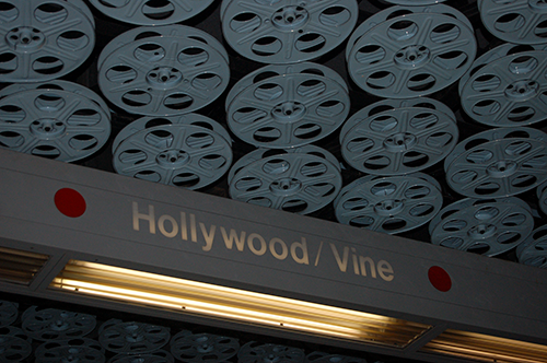 The L.A. Metro is pretty awesome. Here’s the Hollywood/Vine station. The entire ceiling throughout (only) this station is covered with actual 1000′ metal film reels:
