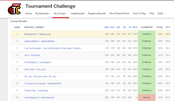 If we do have another Bracket tournament this year, please remember to join it. The one we had last year was spectacular because of all the upsets, leading to a close finish for first place. In the haze of a year gone by, I forget how things turned out…
