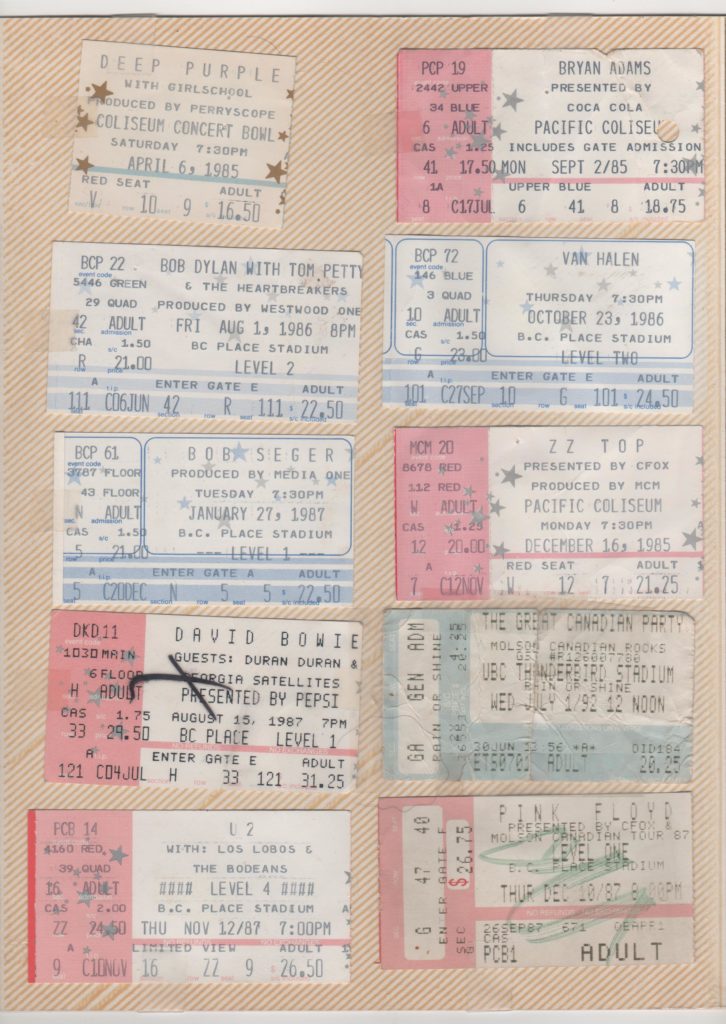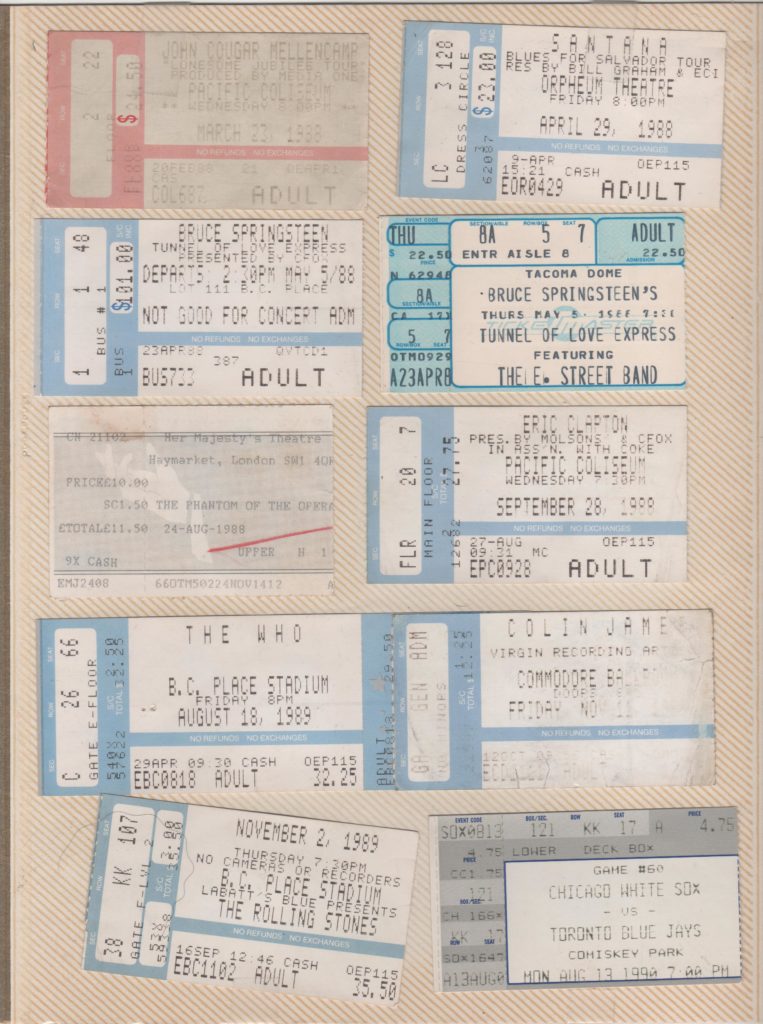 Now, as it happens, I am officially on summer vacation from last Thursday, since my role as senior teacher meant I had to work a couple of weeks into the summer. (It’s an extra paycheque, and means I don’t have to work the rest of the summer.) While working on the “honeydew” list, I came across an old box in the darkest part of the garage, wherein I found reminders that I had a pretty good few years of concerts between grade 11 & third-year university.