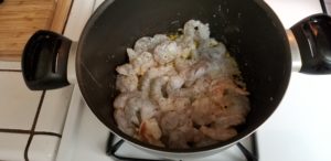 One thing that’s different this time, I’m actually going to walk you through the process of peeling and de-veining raw shrimp!