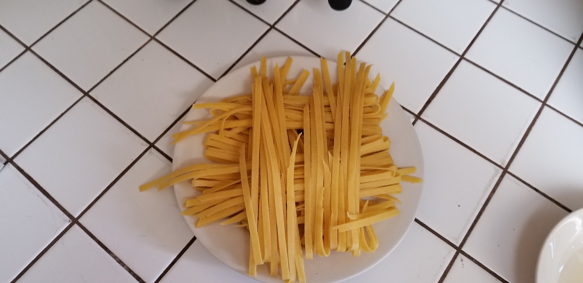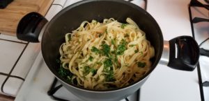 Quick note here: this dish comes together really quickly – I mean just a couple of minutes so plan your pasta making or cooking accordingly. I rolled, cut, dried and cooked the pasta before I even started the cooking process.
