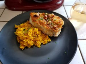 And finally one of my all time favorite Sunday Gravy meals, macadamia crusted halibut steak.