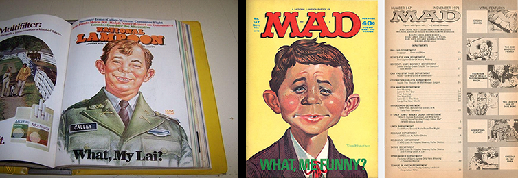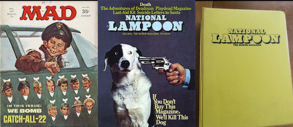 I bought the Catch-22 issue (March 1971) just for Mort Drucker’s artwork; the classic “kill this dog” cover (often referred to as one of the greatest magazine covers ever) was the most expensive, but it’s classed as “collectible – very fine”; and then the binder is the entire 1971 run of National Lampoon in it’s Doug Kenney heyday. Oddly enough, in 1971 there were not one but two MAD parodies in National Lampoon: the August 1971 cover and the November 1971 entire issue.