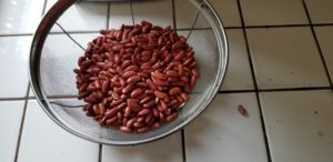 First thing to do is rinse and sort through the red beans.