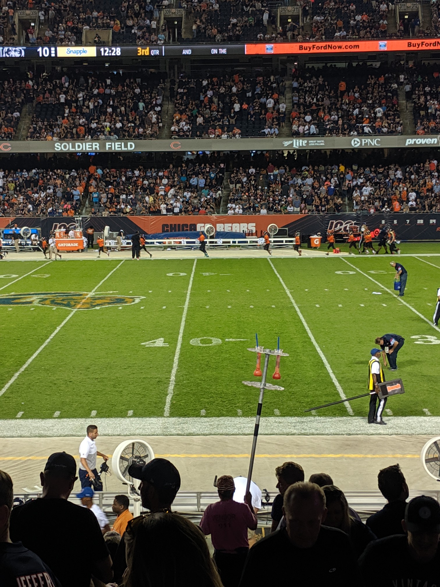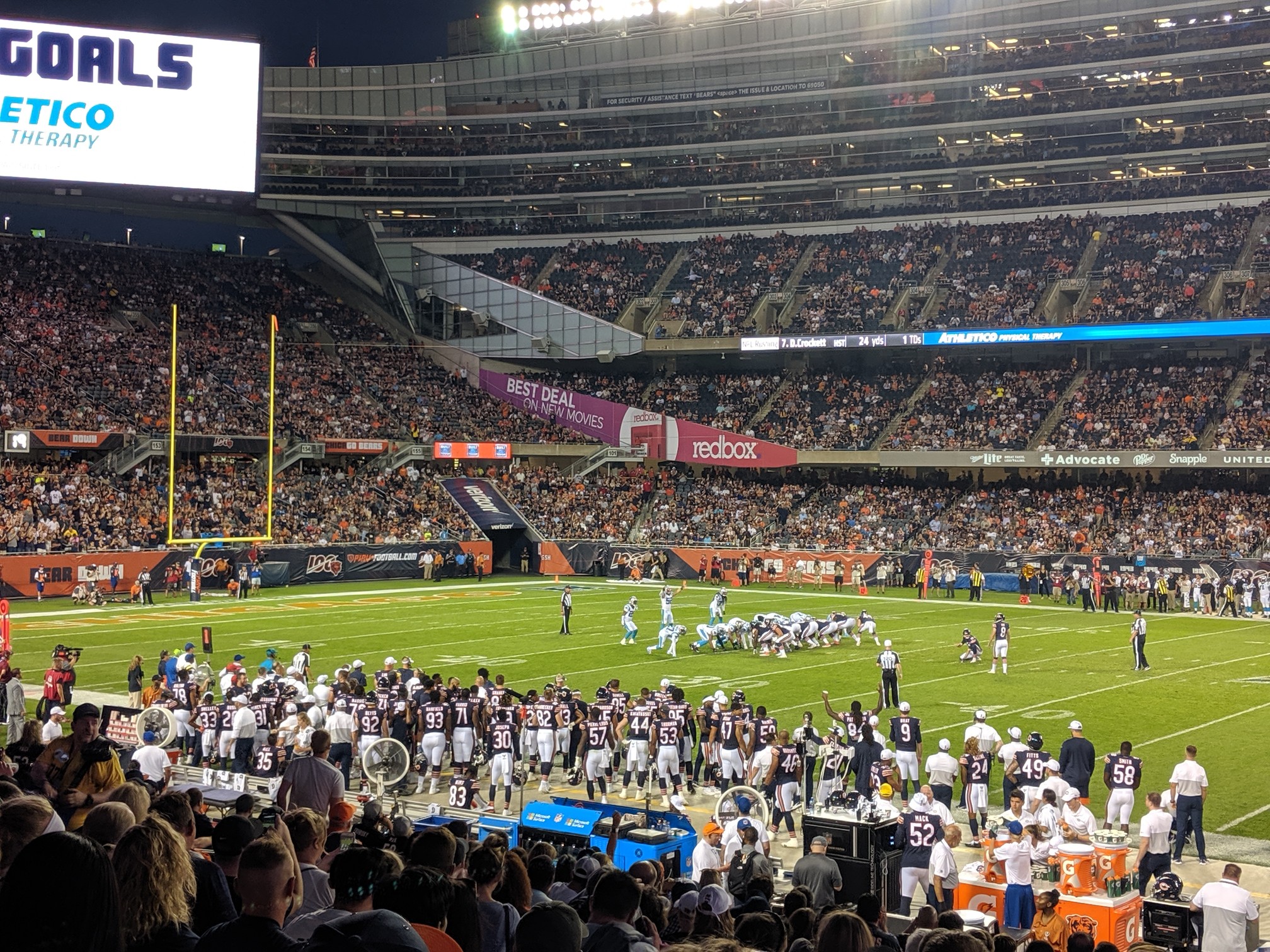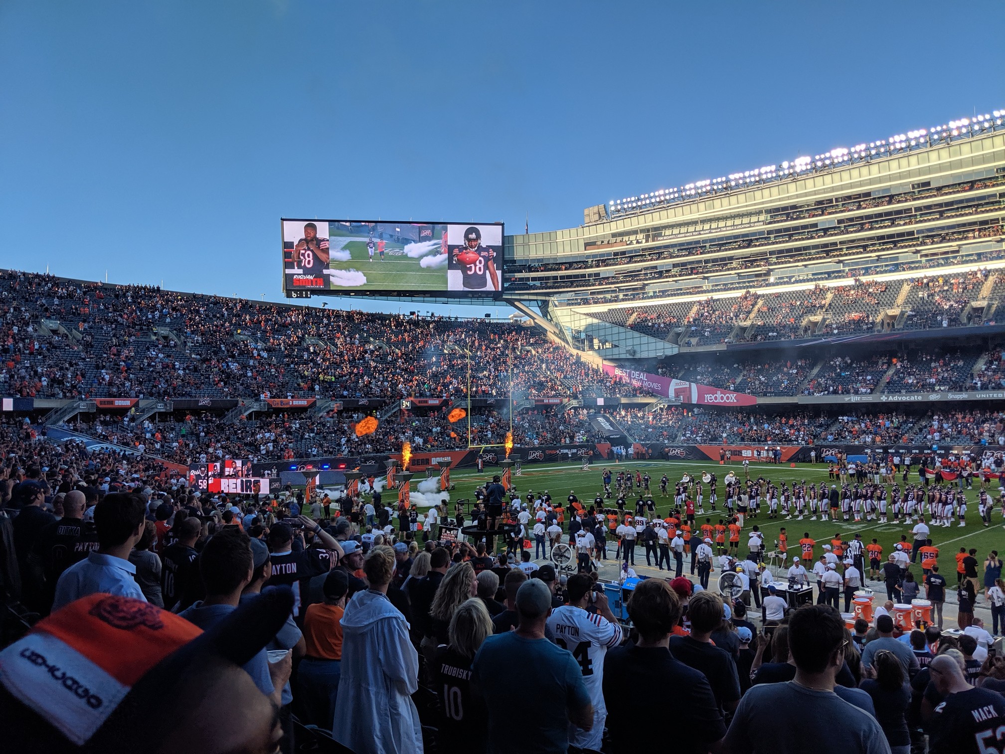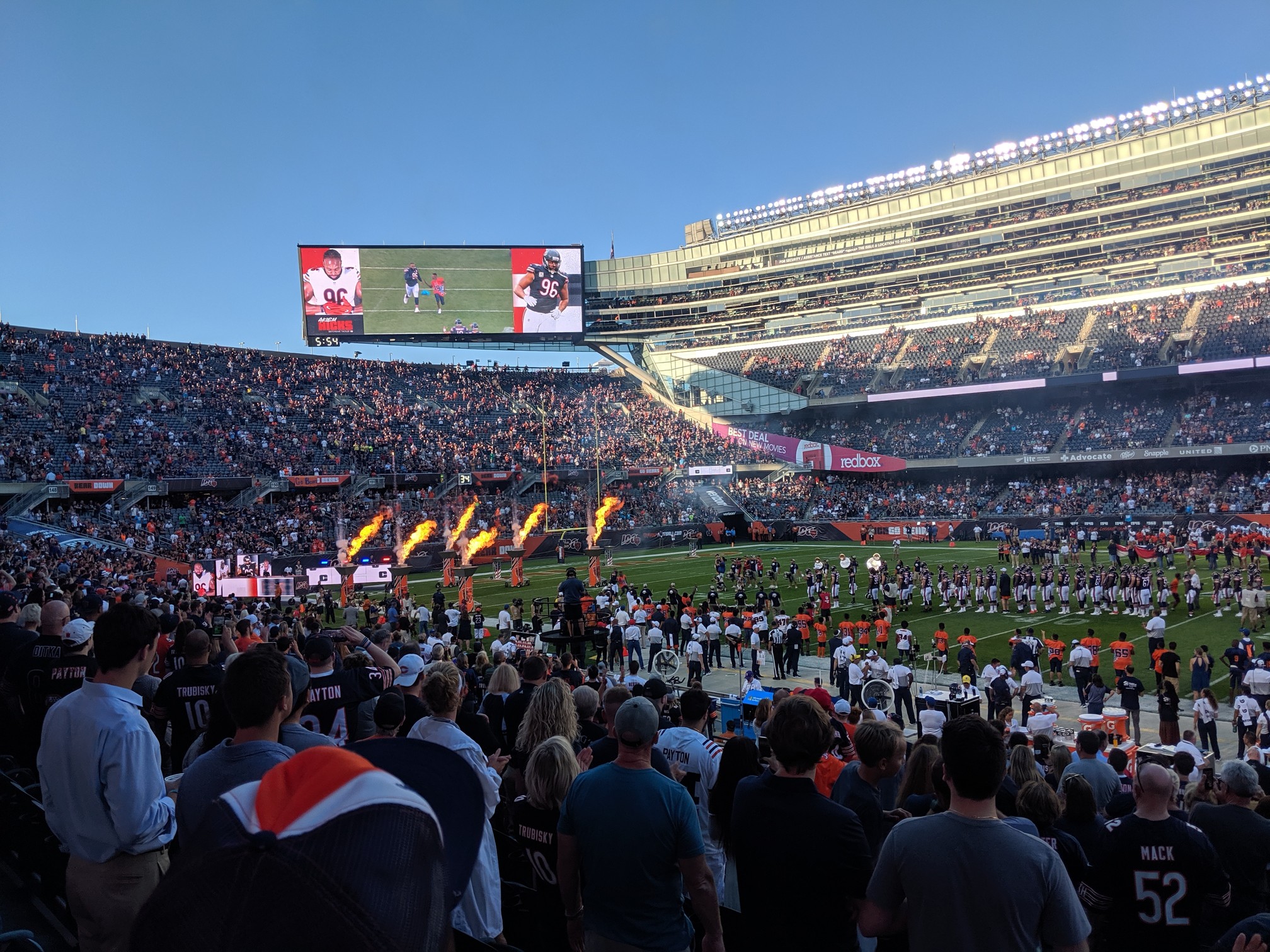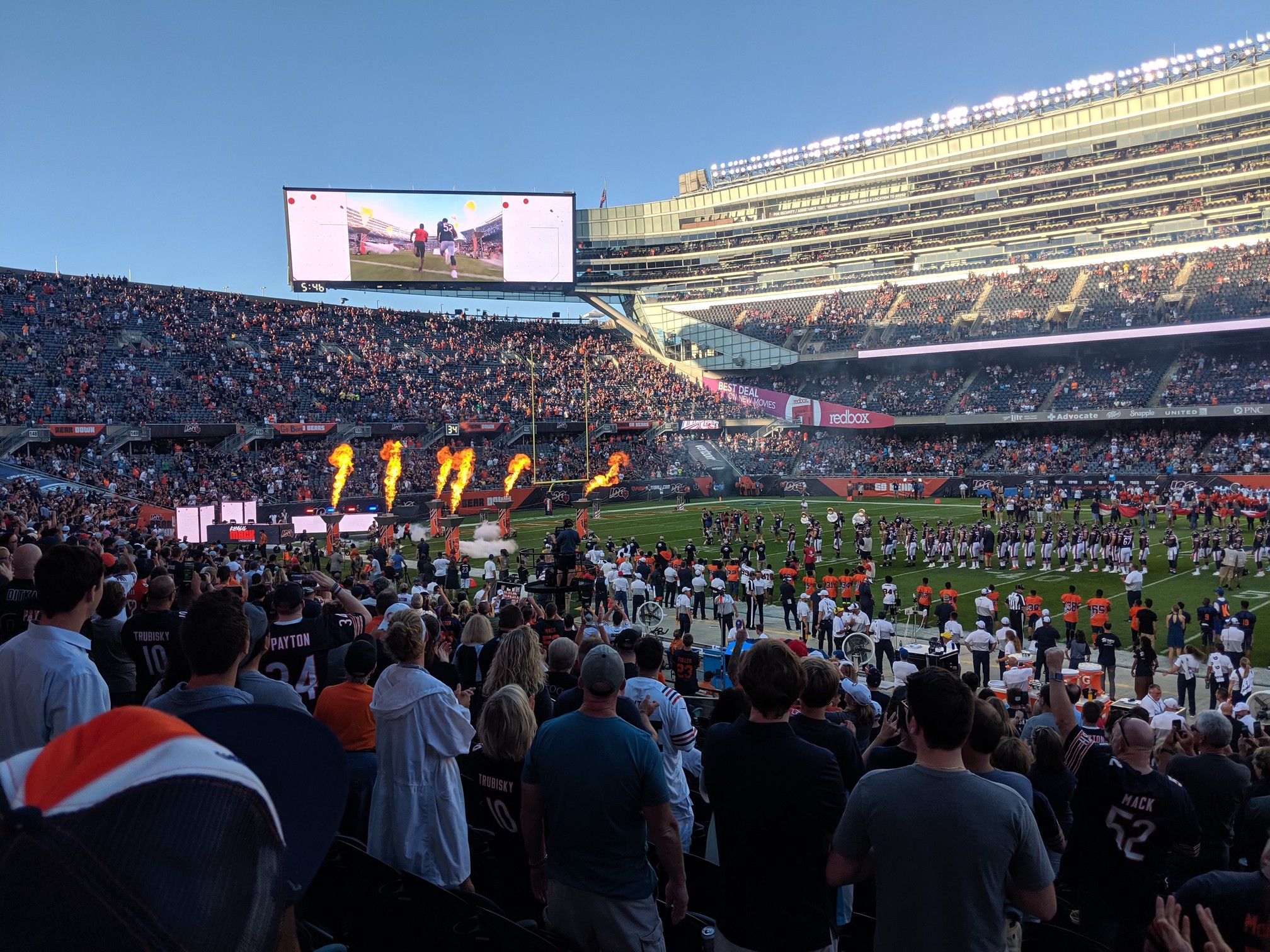 The Catler Who Couldn’t Care Less reminded me, I did indeed partake in some football-like substances on my most recent visit to Chicago earlier this month (I even met Brocky IRL there. I stand by my conclusion that he probably isn’t a serial killer). As fortune had it, my brother-in-law had spare tickets to the game, so I went, and clearly it was memorable. Let’s BOTG this and see if anything I learned will be helpful for prognostication purposes.
