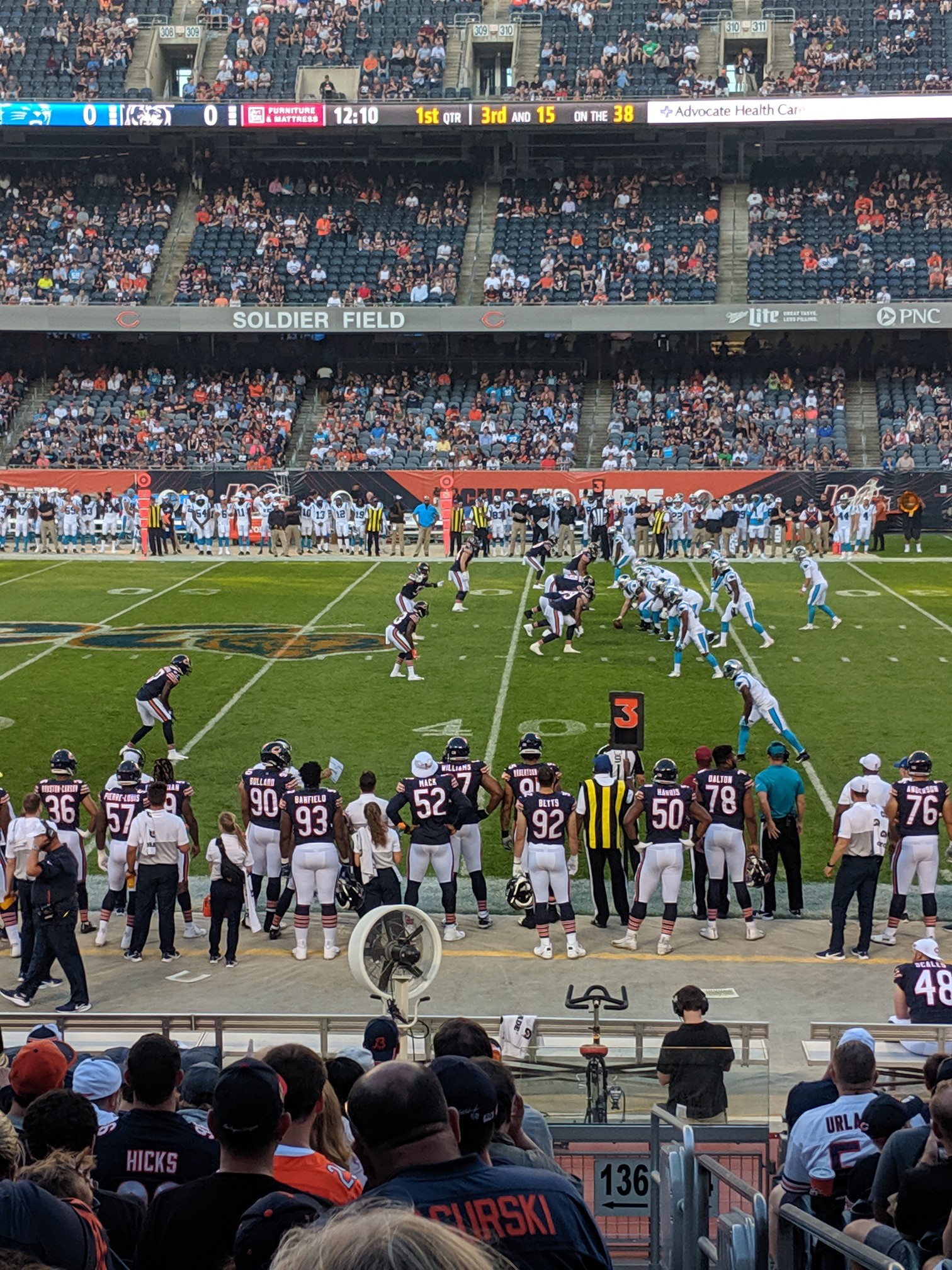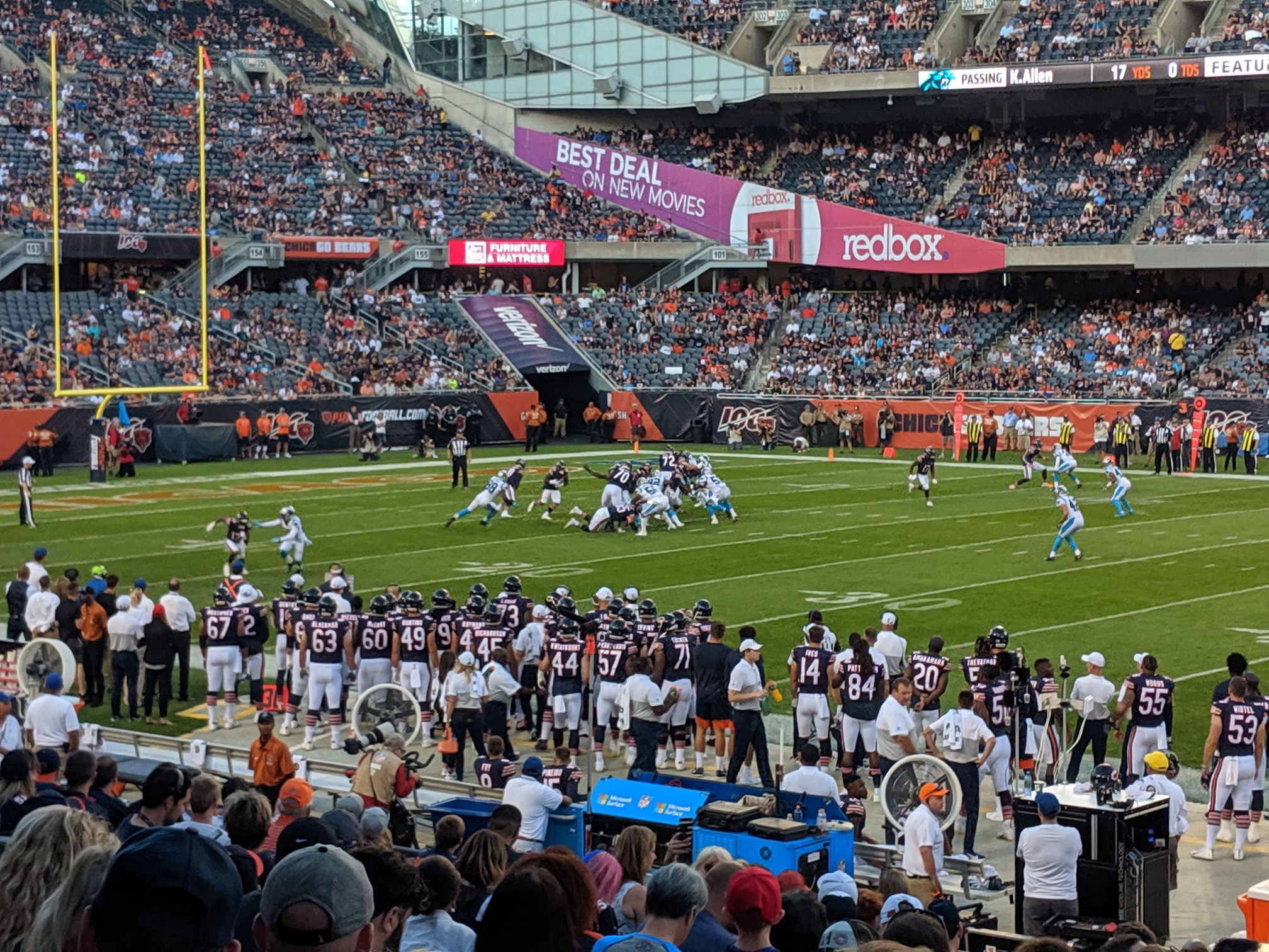 The Bears went into the preseason carrying two kickers, Elliot Fry and Eddy Pineiro. Presently, they jettisoned the former and stuck with the latter despite Pineiro never having appeared in a regular season NFL game and pressure being all important and everything. Anyway, back to pre-season game one. Not surprisingly, the Bears had a drive stall out early (wooooo, Chase Daniel!!!!). As the kicking team ran out onto the field, everyone in Soldier Field freaked out. I’m not kidding. People were shushing each other before the kick, just to make sure Fry had eerie silence or something. AND THEN THE PANTHERS CALLED A TIMEOUT TO ICE THE KICKER IN A FUCKING PRE-SEASON GAME. Rivera said he did it as a favor to Nagy to help figure out if Fry could handle the pressure.It was bizarre. When Fry made the kick, people went fucking nuts.