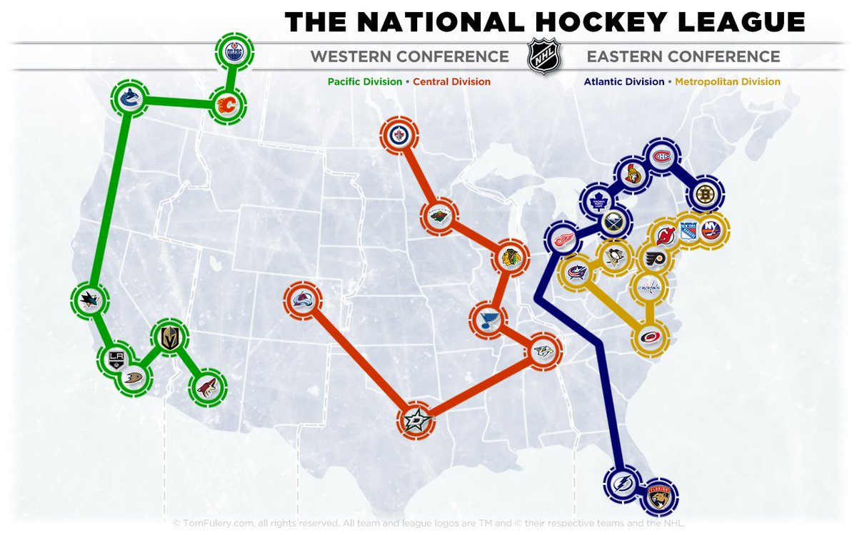 Plus, it’s not like the league actually enjoys having teams in Western Canada. Look at this map: