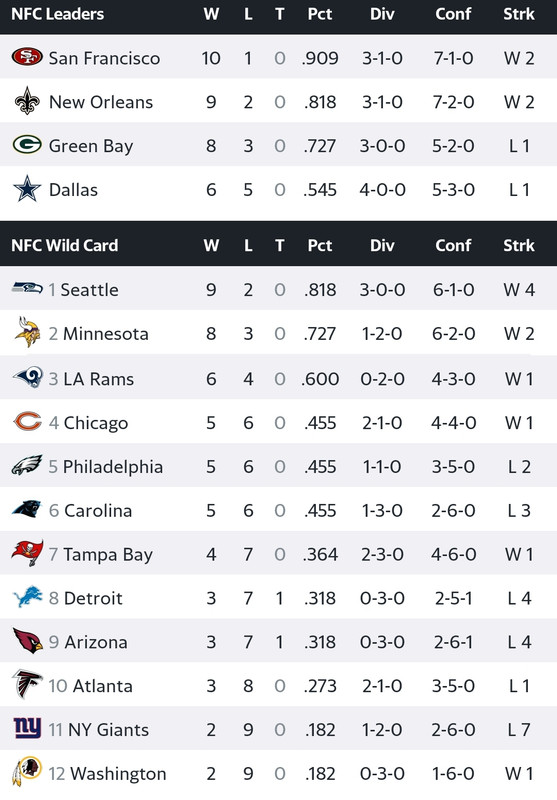 Obviously i understand there’s a 3 way tie at 5-6, but wouldn’t Philadelphia’s win over the bears and their better conference record than the Panthers give them the lead?